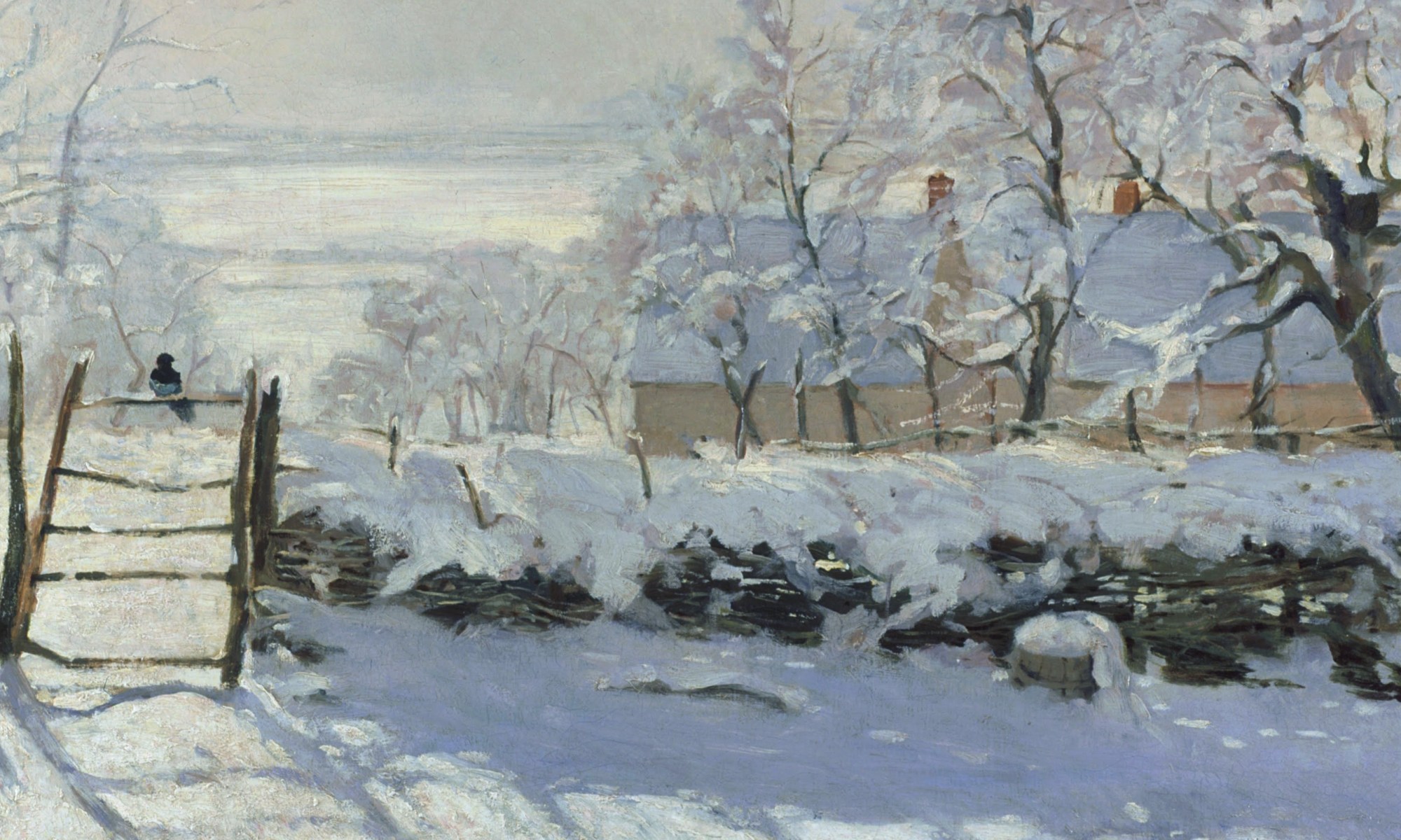 dat daken van de huizen aan de overkant besneeuwd zijn