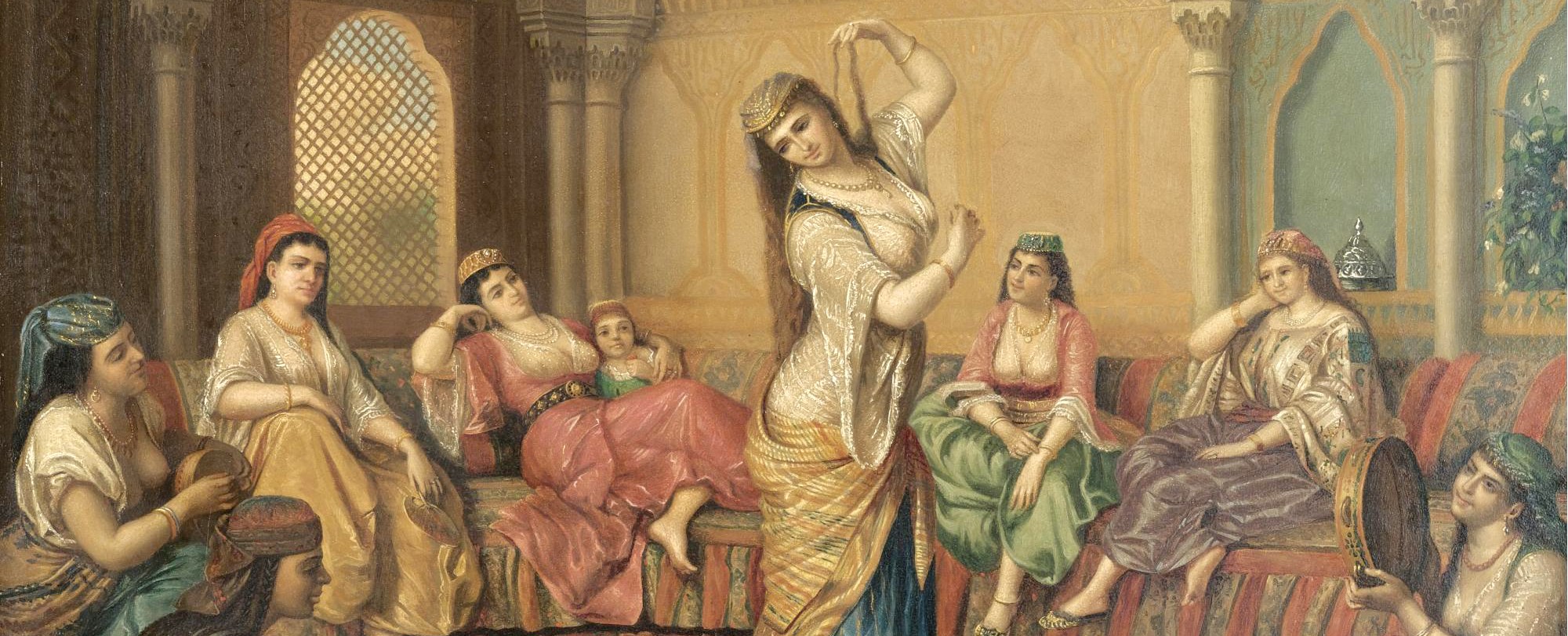 Muliebris ibi sexus multo cultior et ornatior est in habitu quam sit in Thimesio; habent enim in capite quasi esset tamborinnum, quod de sedico cum gemmis ornatum est, vel de auro, vel aliqua alia materia; secundum conditionem portantis, sed dum exeunt domus suas, caput atque corpus totum falia una sive mantello de lino albissimo operiunt. Subtus illis faliis habent suas longas usque ad pedes vestes ornatissimas, circaque capita gemmas multas, uti pluries vidimus in foris publicis et locis ubi veniunt ad emendum iocalia dum falias suas atque mantella aperuerunt ut eas conspiceremus. Veniunt enim ad illa loca, uti et nostre, ut aspiciant et aspiciantur. Sunt enim facies sue cooperte cum pecia una dulcissimi lini vel sedici, in quibus sunt duo foramina oculis correspondentia per que vident. In tibiis autem portant braccas de lino et sunt bracce ille aliquando multum preciose et de coreo odorifero, parva tibialia usque ad genua quemadmodum Catalani atque Portugalenses sive Hispani faciunt et in pedibus planellas aureas sive galoceas depictas. Sunt enim multum polite et compte circa tibias et pedes. Sed rurales sive rustice non utuntur illis tamborinnis in capitibus nec mantellis illis lineis, sed uno longo pepulo, magis multo quam facies longo, sed non latiori quam sint earum facies. Quod etiam in se habet duo foramina oculis correspondentia ex quibus vident.